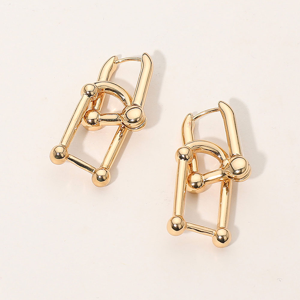 • Elevate your jewelry collection with these geometric linked earrings featuring a sculptural, minimalist design. Perfect for adding a sleek, modern accent to any outfit, they blend elegance and edge, making them a versatile statement piece for day or night.