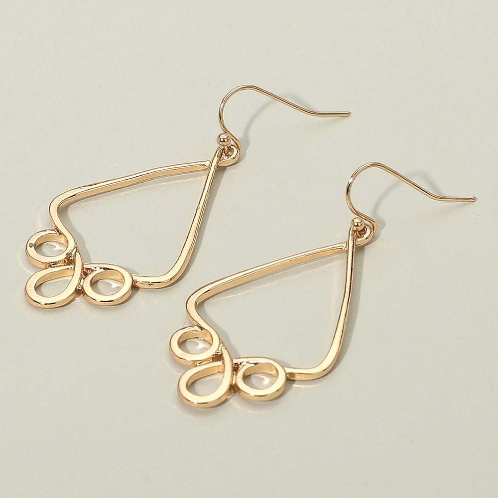 Details • Size : 1" X 2" • Fish Hook Back • Geometric drop earrings with open-frame triangular shapes and delicate loop accents. Lightweight and stylish, these earrings add a chic, contemporary touch to any outfit, perfect for casual looks or dressy occasions. • Lead and Nickel Compliant