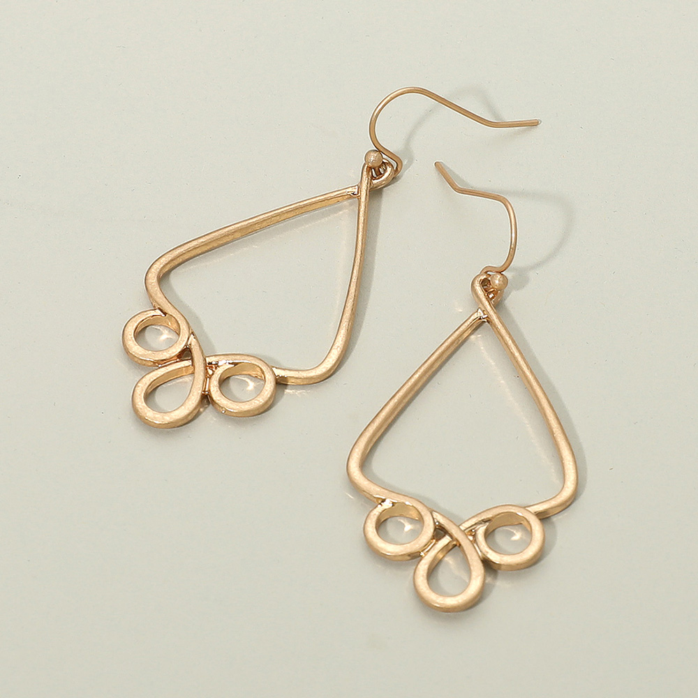 Details • Size : 1" X 2" • Fish Hook Back • Geometric drop earrings with open-frame triangular shapes and delicate loop accents. Lightweight and stylish, these earrings add a chic, contemporary touch to any outfit, perfect for casual looks or dressy occasions. • Lead and Nickel Compliant