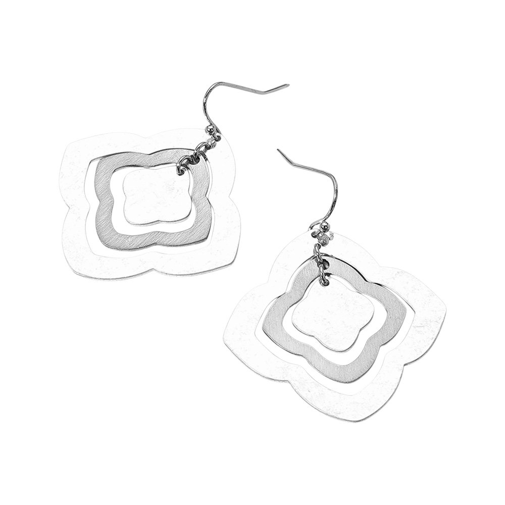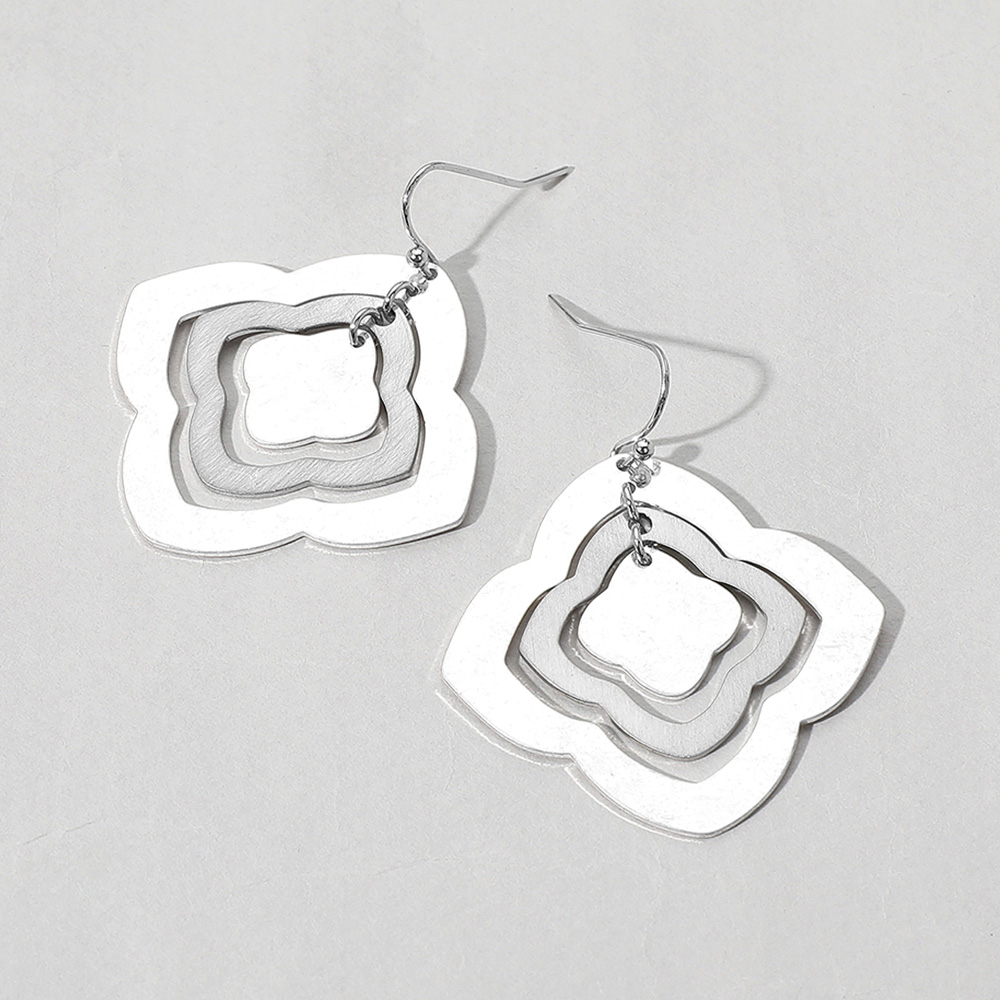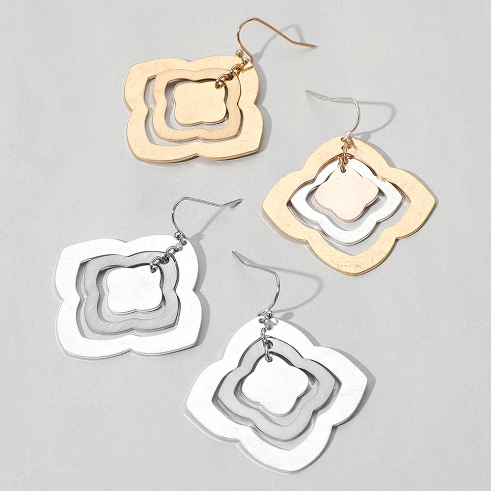 Geometric Quatrefoil Metal Plate Concentric Dangle Earrings