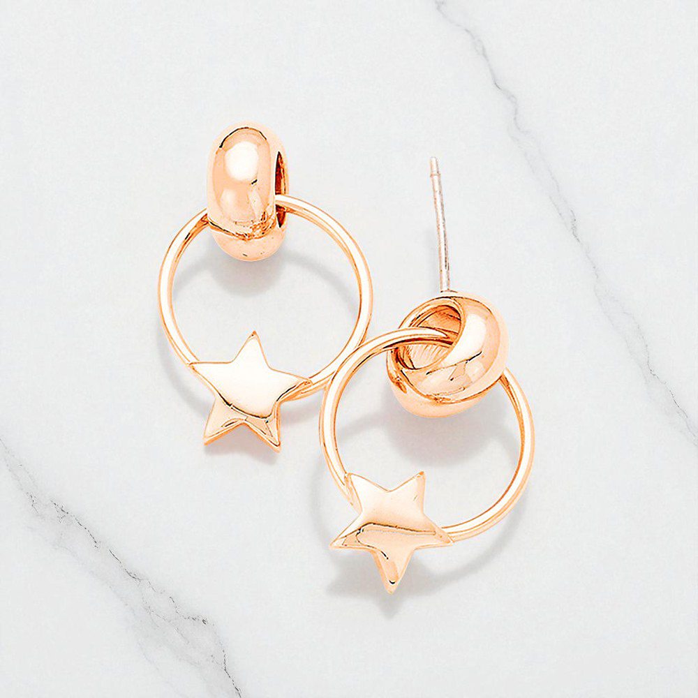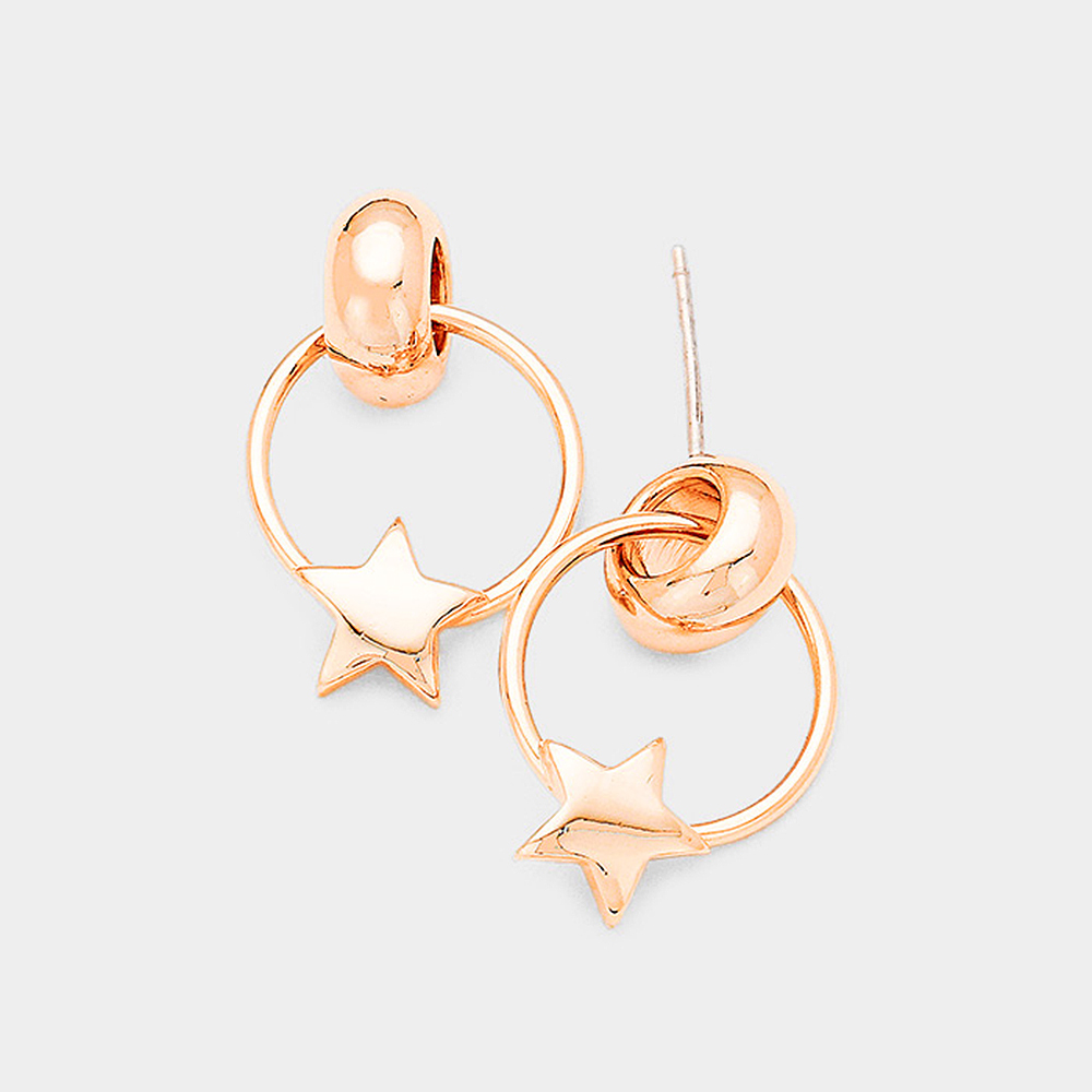 Gold Dipped Star Metal Hoop Dangle Earrings