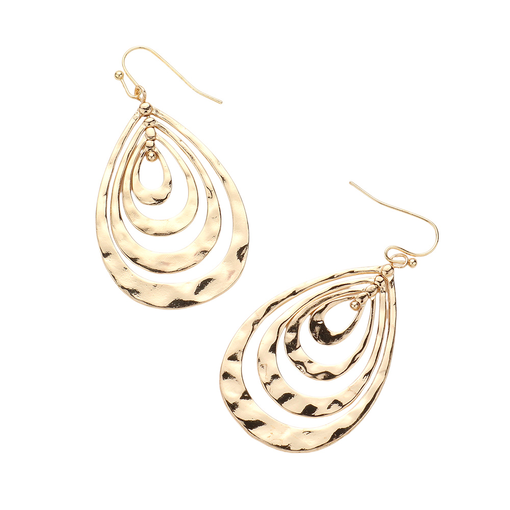 Hammered Metal Concentric Teardrop Dangle Earrings