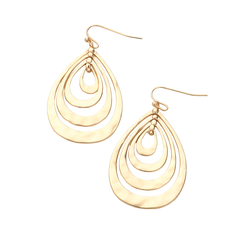 Hammered Metal Concentric Teardrop Dangle Earrings