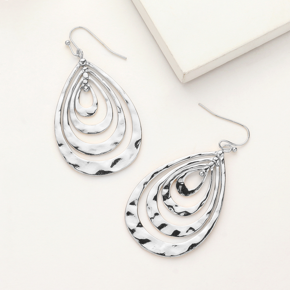 Hammered Metal Concentric Teardrop Dangle Earrings