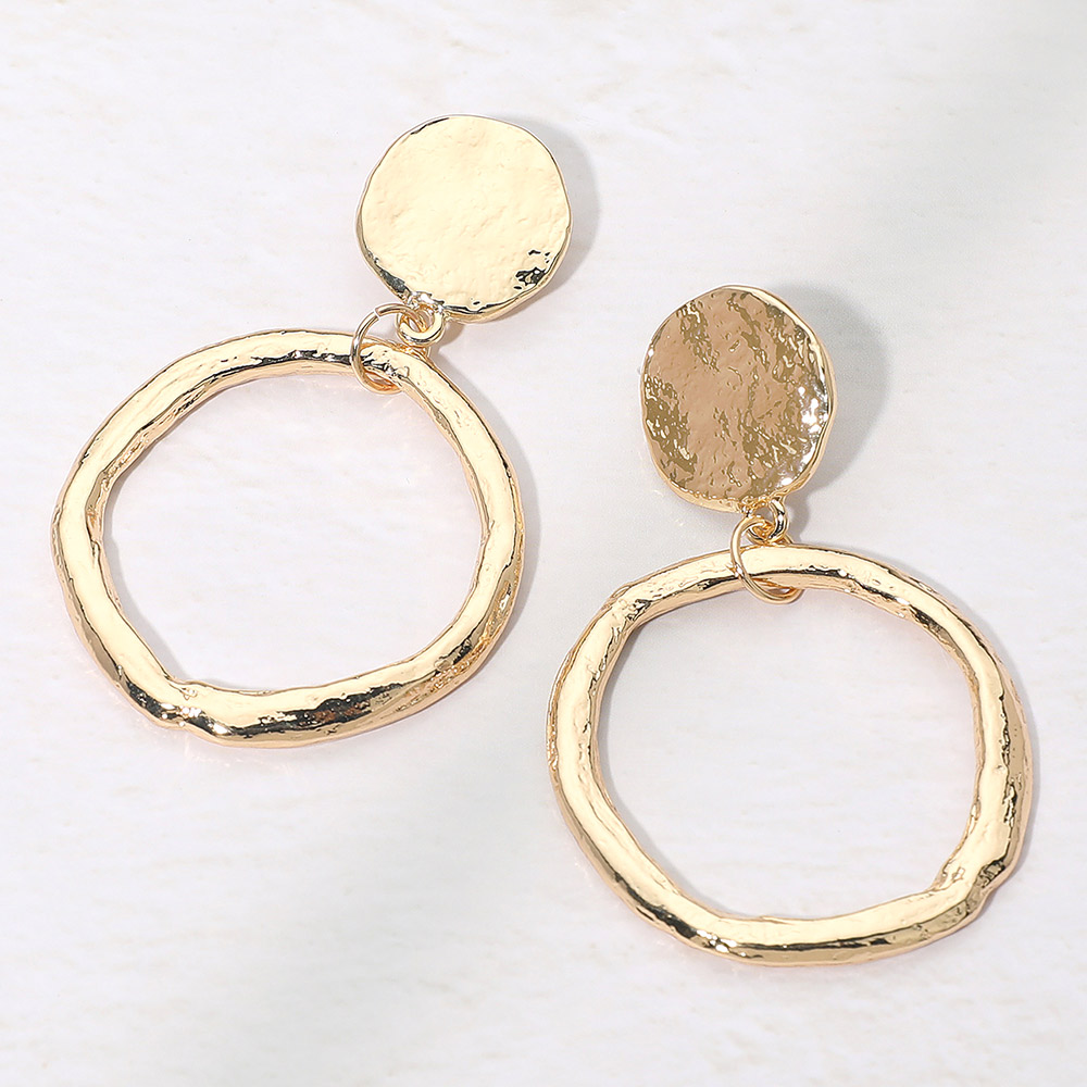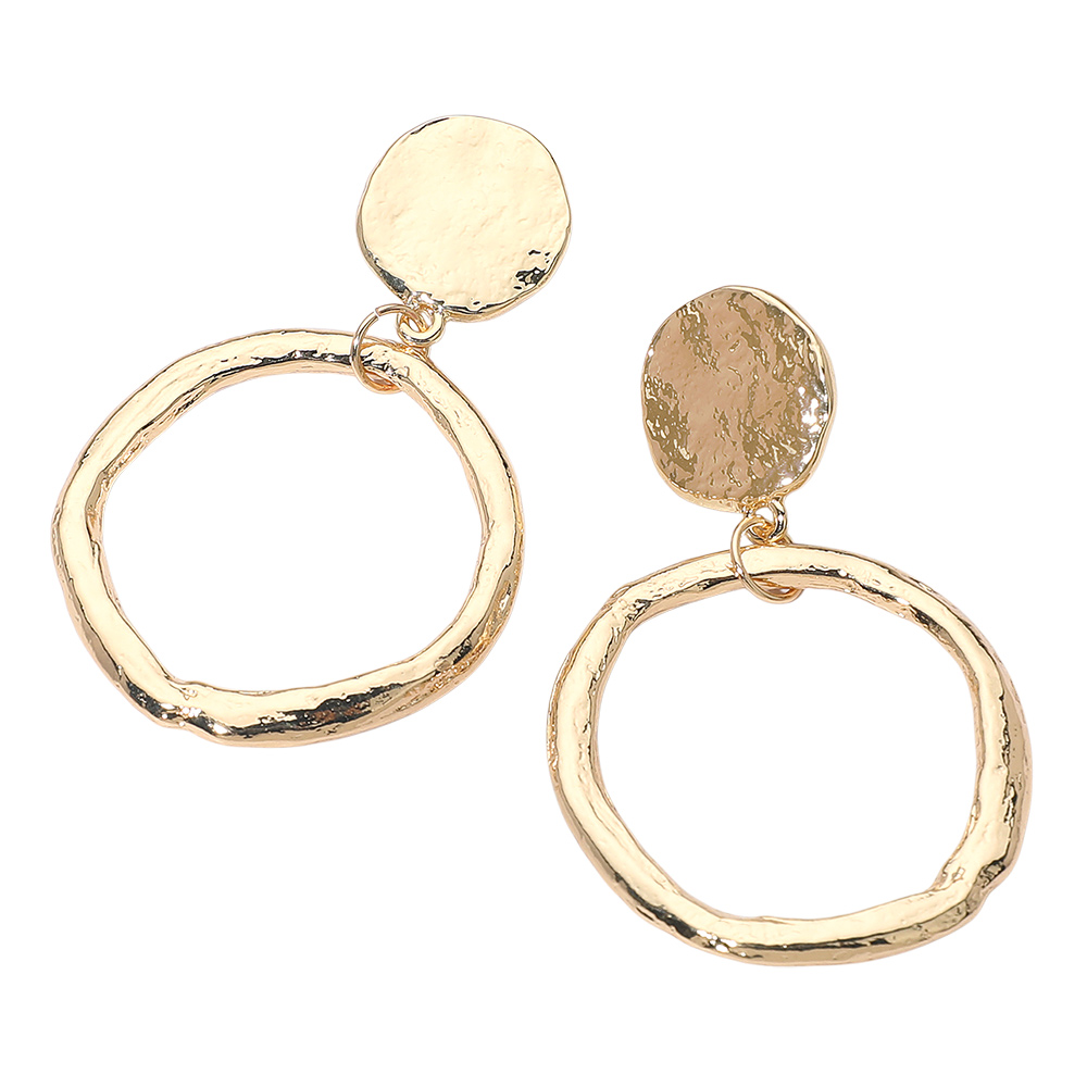 Hammered Metal Ring Drop Dangle Earrings Hammered Metal Ring Drop Dangle Earrings
