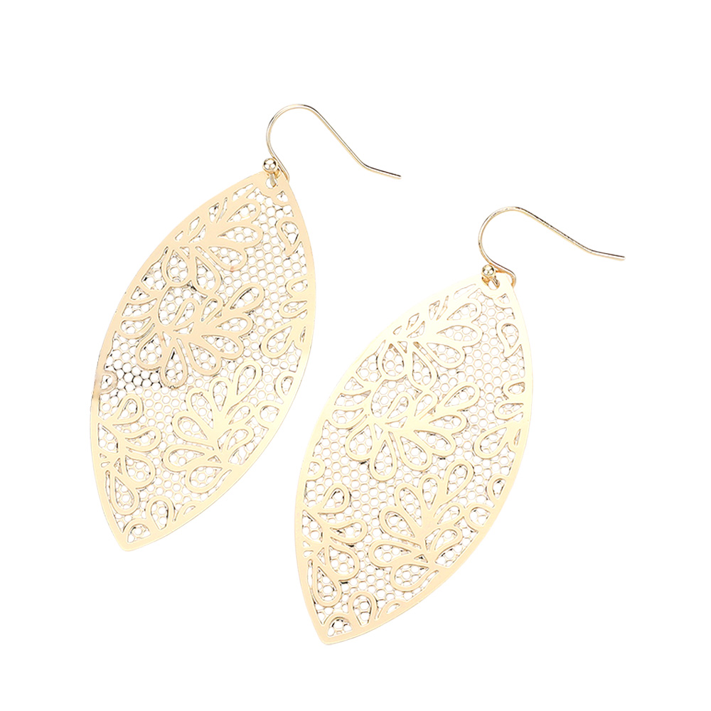 Teardrop Glass Stone Metal Filigree Leaves Dangle Earrings