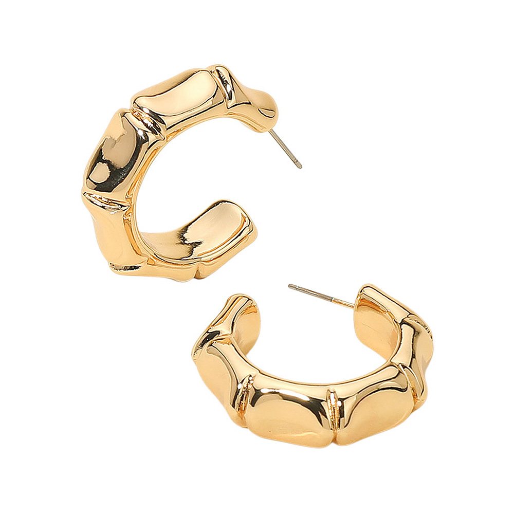 Details • Size : 1.25" X 1.25" • Post Back • Trendy bamboo-inspired hoop earrings with a bold, chunky design. Lightweight and comfortable to wear, these hoops add a stylish statement to casual outfits or elevate evening looks with modern flair. • Lead and Nickel Compliant