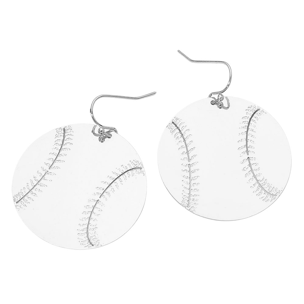 Details • Size : 1.5" X 1.8" • Fish Hook Back • Sporty round dangle earrings featuring an engraved baseball stitch pattern, perfect for gameday outfits and fan-inspired looks. Lightweight statement style adds fun sports flair to everyday wear or team events, making them an ideal accessory for baseball lovers. • Brass • Lead and Nickel Compliant