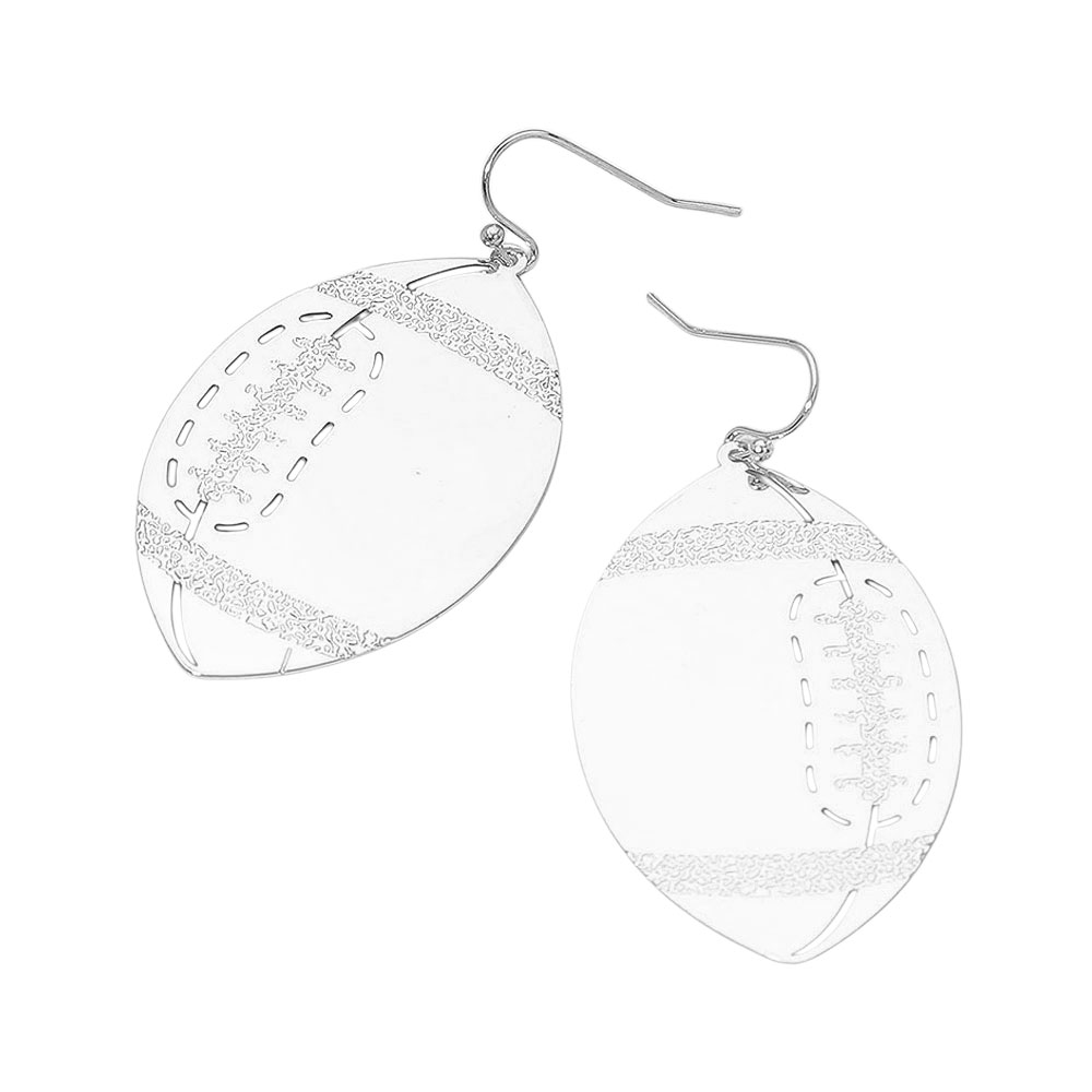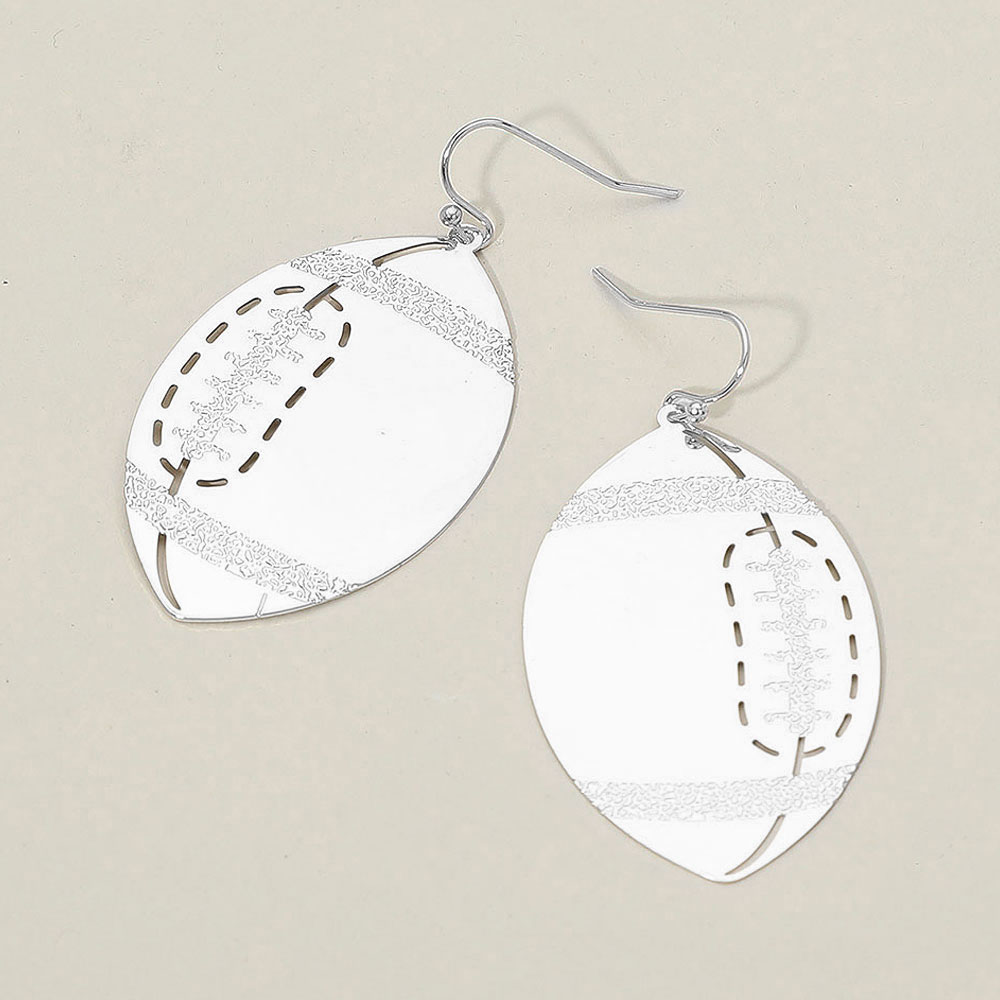 Details • Size : 1.25" X 2.3" • Fish Hook Back • Show your team spirit in style with these football cutout dangle earrings. Designed with a sleek openwork pattern that highlights the iconic ball shape, they bring a sporty yet chic vibe to your outfit. Perfect for game days, tailgates, or gifting to any football enthusiast. • Lead and Nickel Compliant • Brass