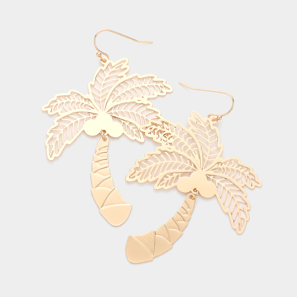 Antique Metal Abalone Palm Tree Dangle Earrings