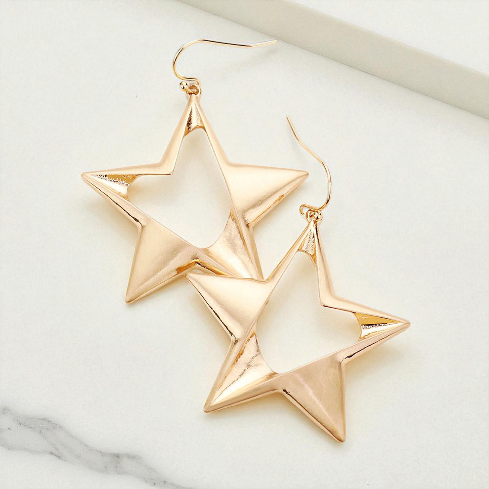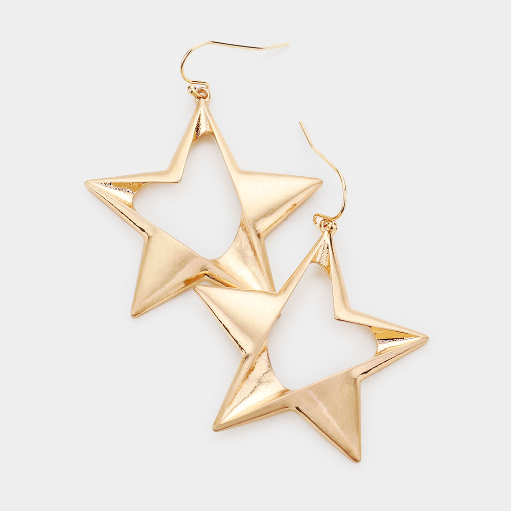 18K Gold Filled Rhinestone Paved T Embossed Star Stud Earrings