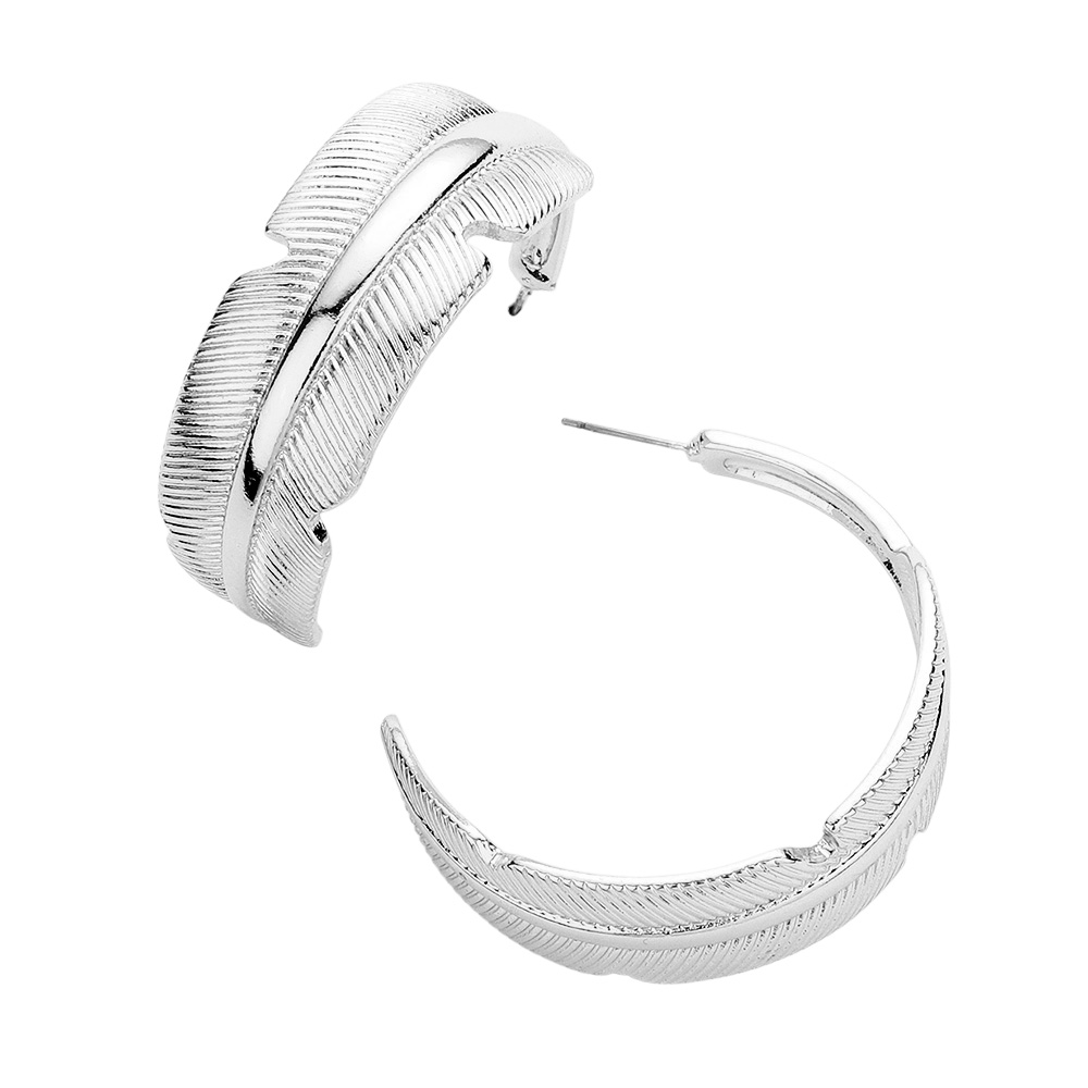 Metal Feather Hoop Earrings