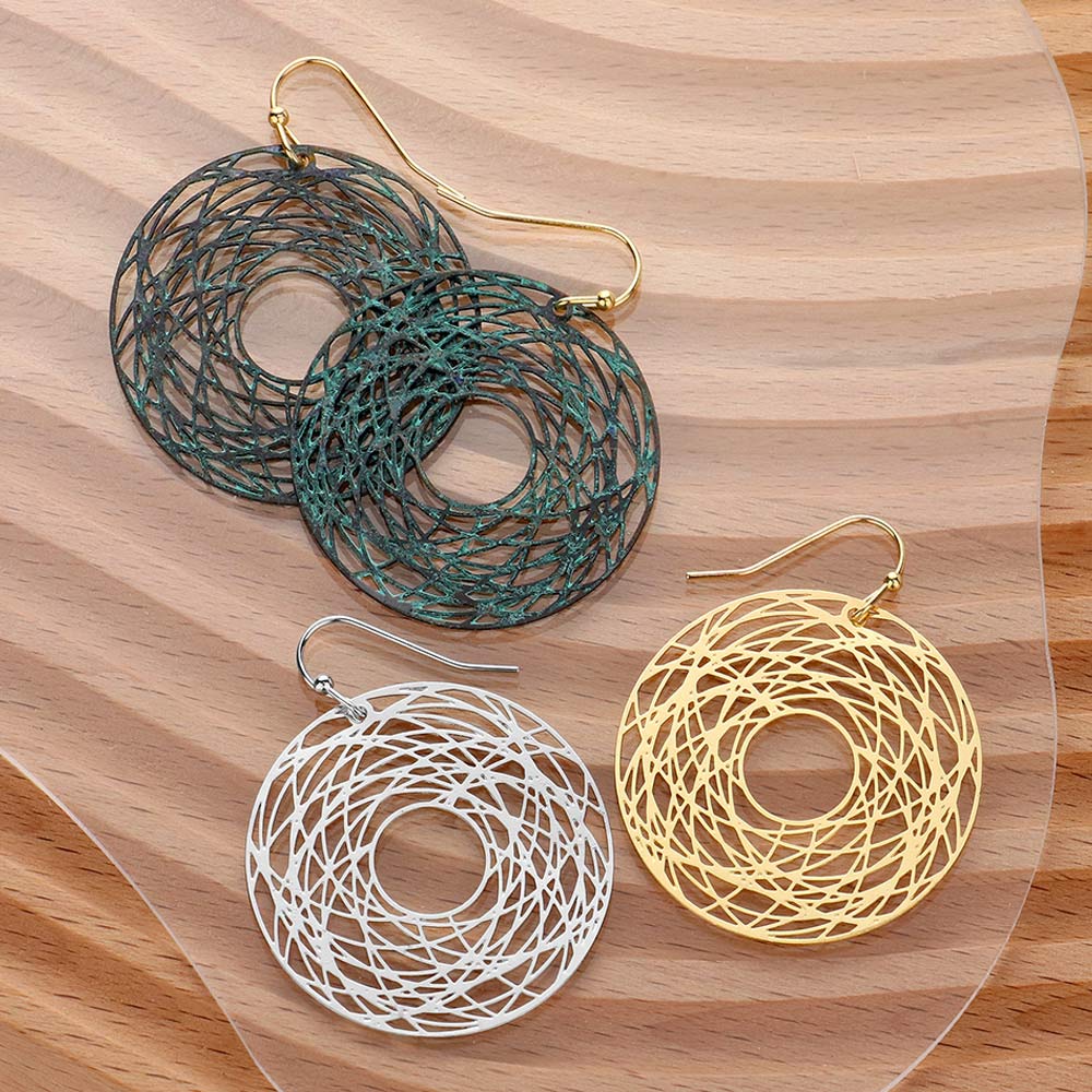 Abstract Pattern Circle Metal Filigree Dangle Earrings