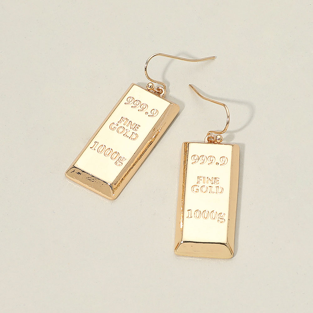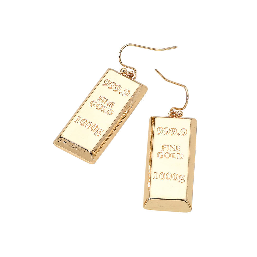 Details • Size : 0.6" X 1.75" • Fish Hook Back • Statement gold bar drop earrings with engraved fine-gold bar detailing, designed for bold, standout style. Lightweight, fun, and perfect for themed looks, parties, gifting, or adding a unique accent to everyday outfits without referencing color or material • Lead and Nickel Compliant