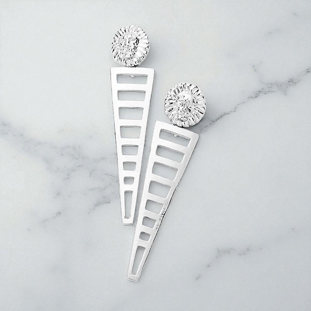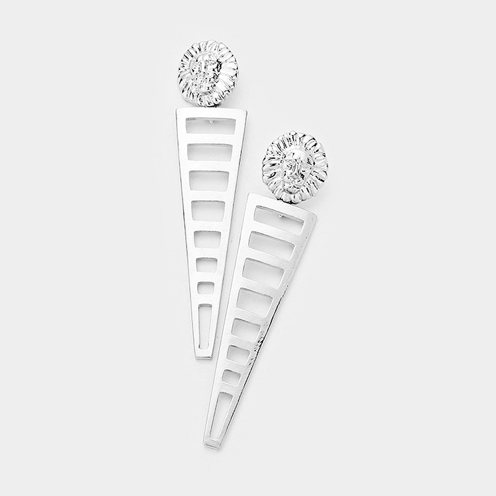 Metal Lion Accented Cutout Triangle Dangle Earrings