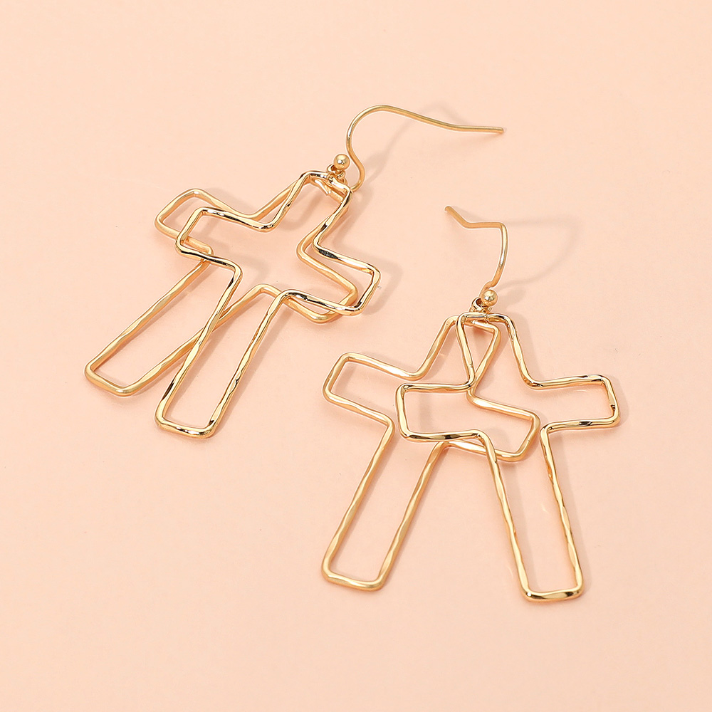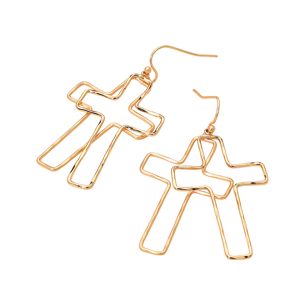 Metal Wire Open Double Cross Dangle Earrings Metal Wire Open Double Cross Dangle Earrings