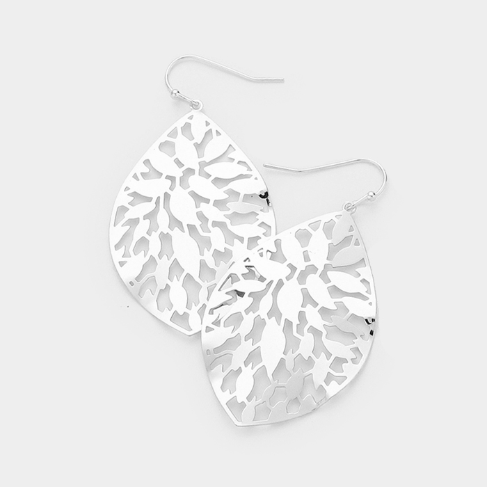 Filigree Leaf Detailed Brass Metal Round Dangle Earrings
