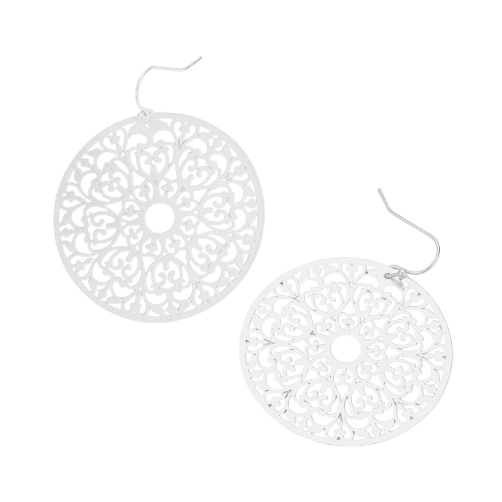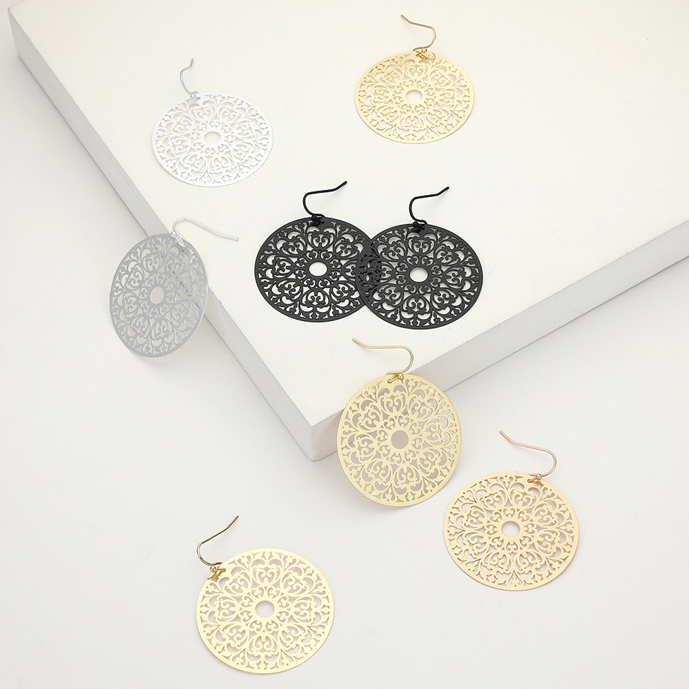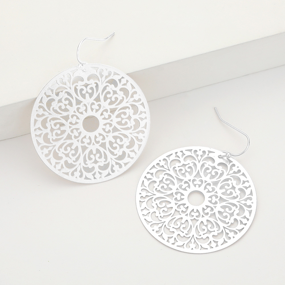 Bold Abstract Geometric Pattern Filigree Plate Drop Earrings