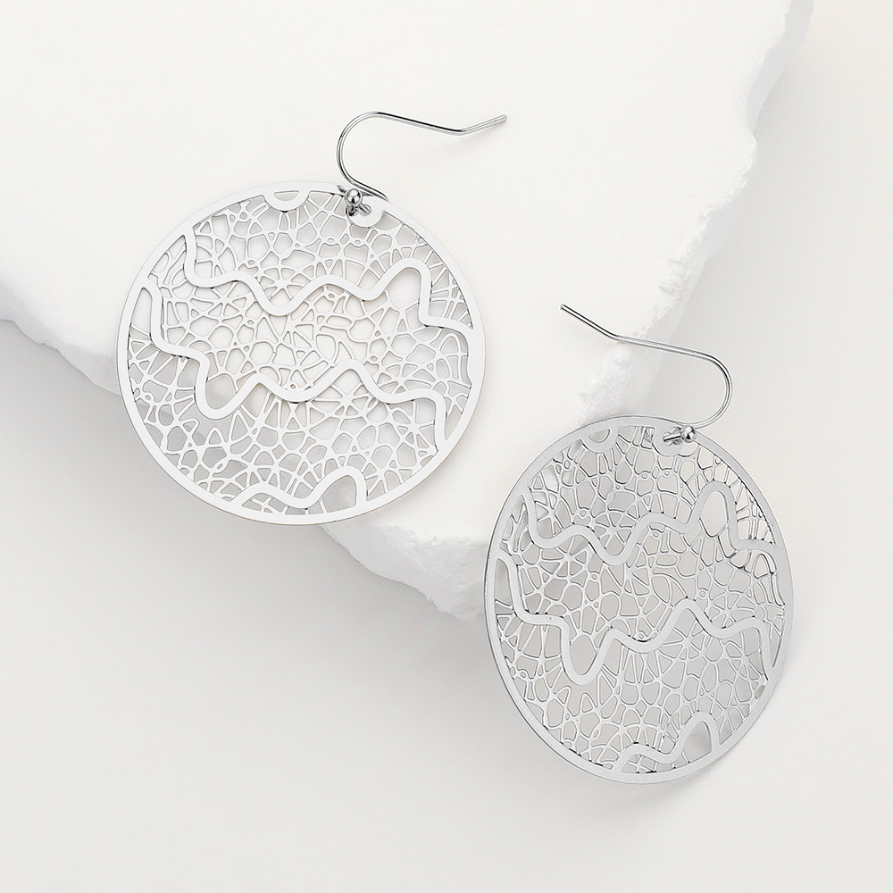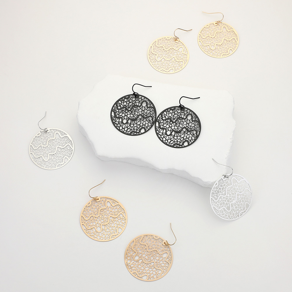 Bold Abstract Geometric Pattern Filigree Plate Drop Earrings
