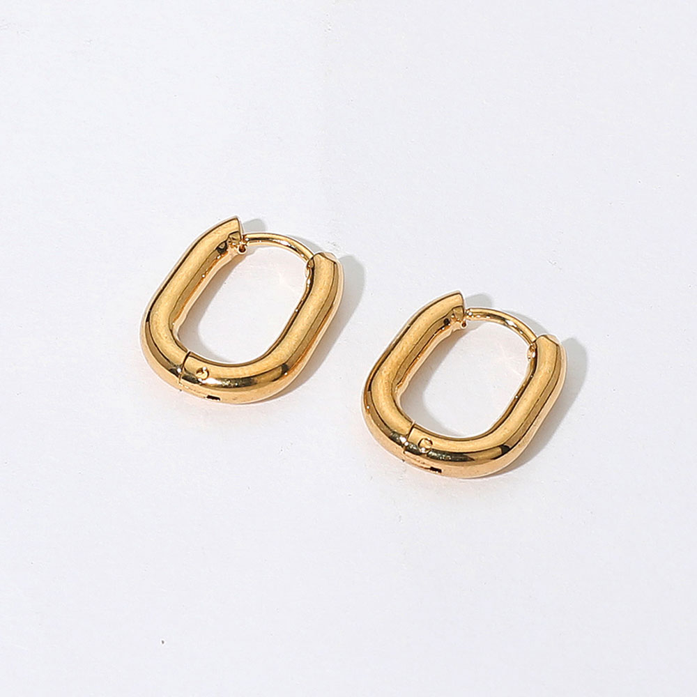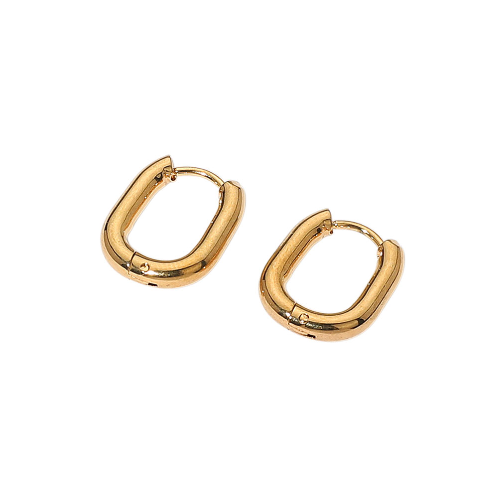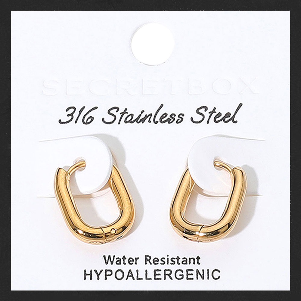 SECRET BOX_Stainless Steel Oval Huggie Hoop Earrings