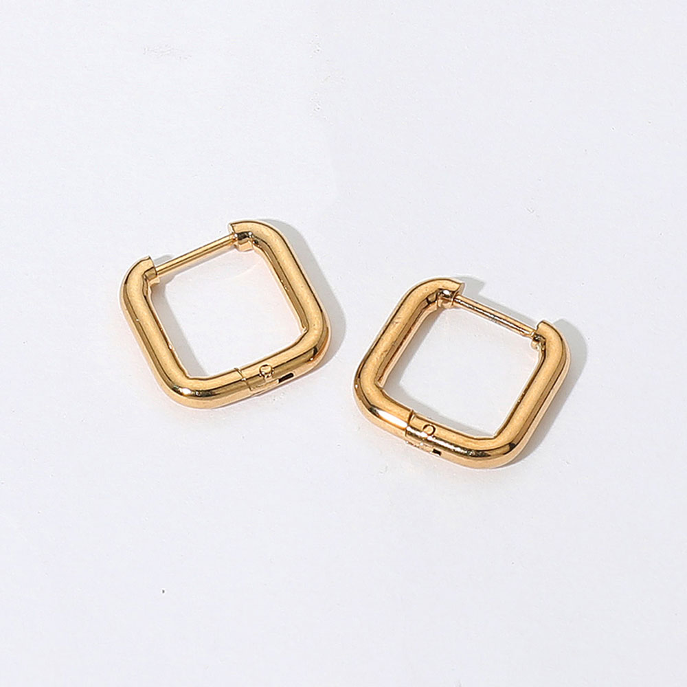 • Small square-shaped huggie hoop earrings with softly rounded corners, offering a modern geometric design perfect for minimalist styling.