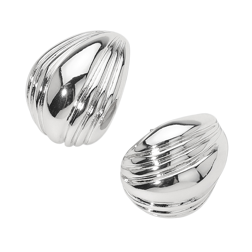 Details • Size : 1" X 1.25" • Post Back • Bold ribbed dome stud earrings featuring a smooth, polished surface with layered groove detailing. A stylish, sculptural design that adds standout shine and modern elegance, perfect for completing everyday or occasion looks. • Sterling Silver Dipped • Lead and Nickel Compliant • Made In Korea