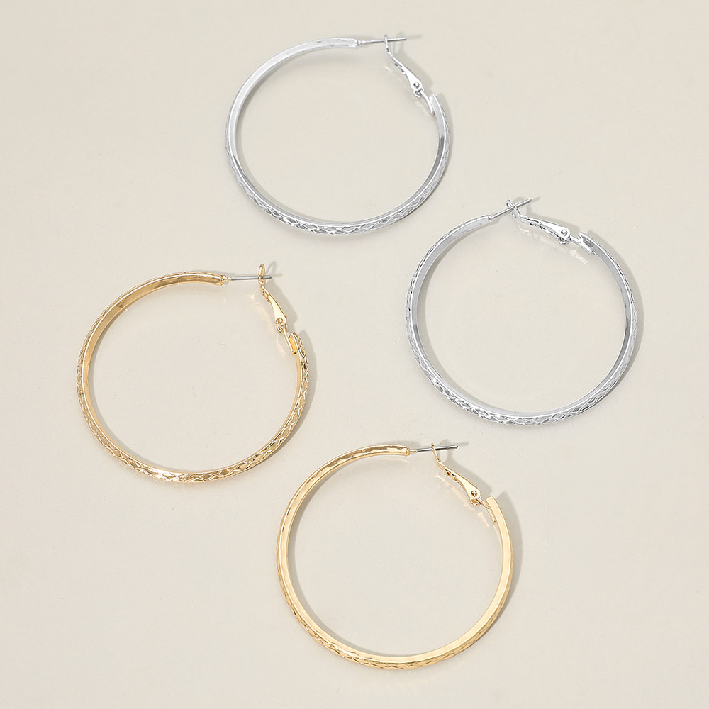 Details • Size : 2" X 2" • Omega Back • Stylish medium hoop earrings with a faceted textured finish that adds shine and dimension. Lightweight and easy to wear with secure latch backs, perfect for elevating everyday looks or adding a chic touch to dressy outfits. • Sterling Silver Dipped • Lead and Nickel Compliant
