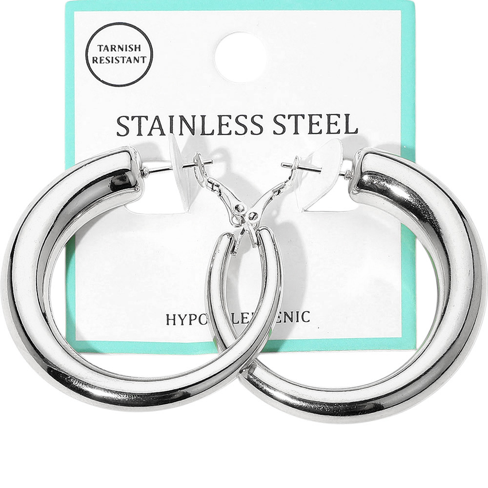 • Bold hoop earrings with a chunky, rounded silhouette and smooth polished finish. A statement accessory that adds modern edge to casual or dressy outfits. Lightweight and perfect for daily wear.
