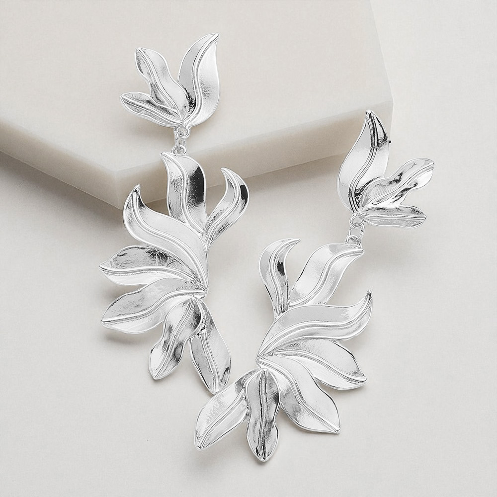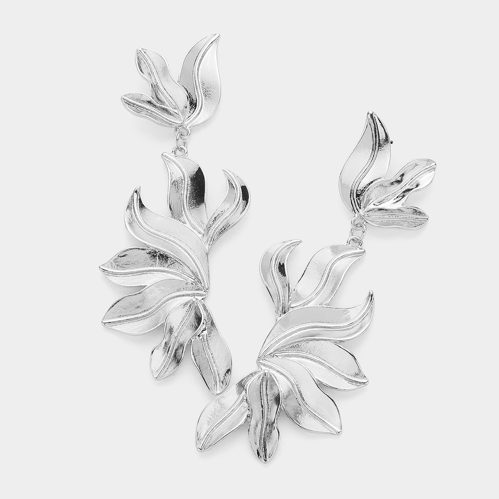 Textured Metal Leaf Dangle Earrings