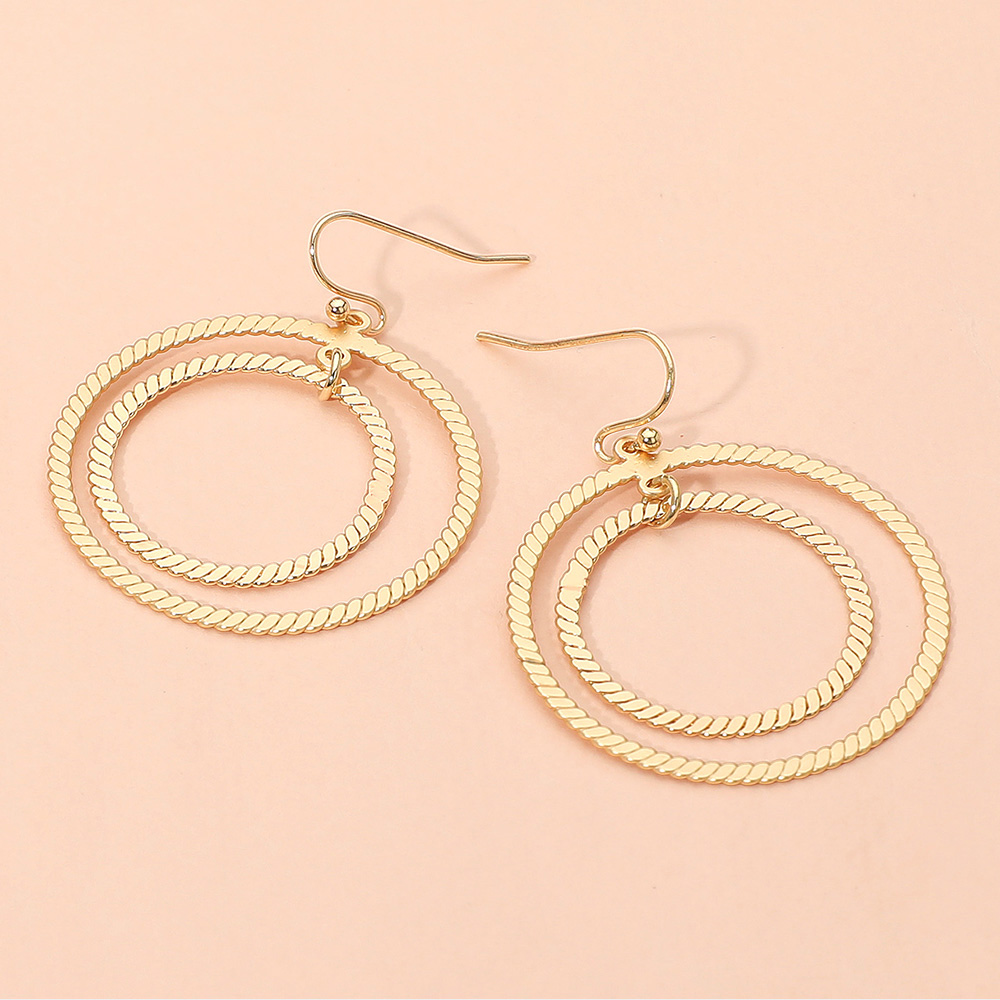 Details • Size : 1.4" X 1.75" • Fish Hook Back • Chic double hoop dangle earrings featuring a textured finish and lightweight design. A versatile accessory that adds a stylish touch to everyday outfits or special occasion looks. • Lead and Nickel Compliant