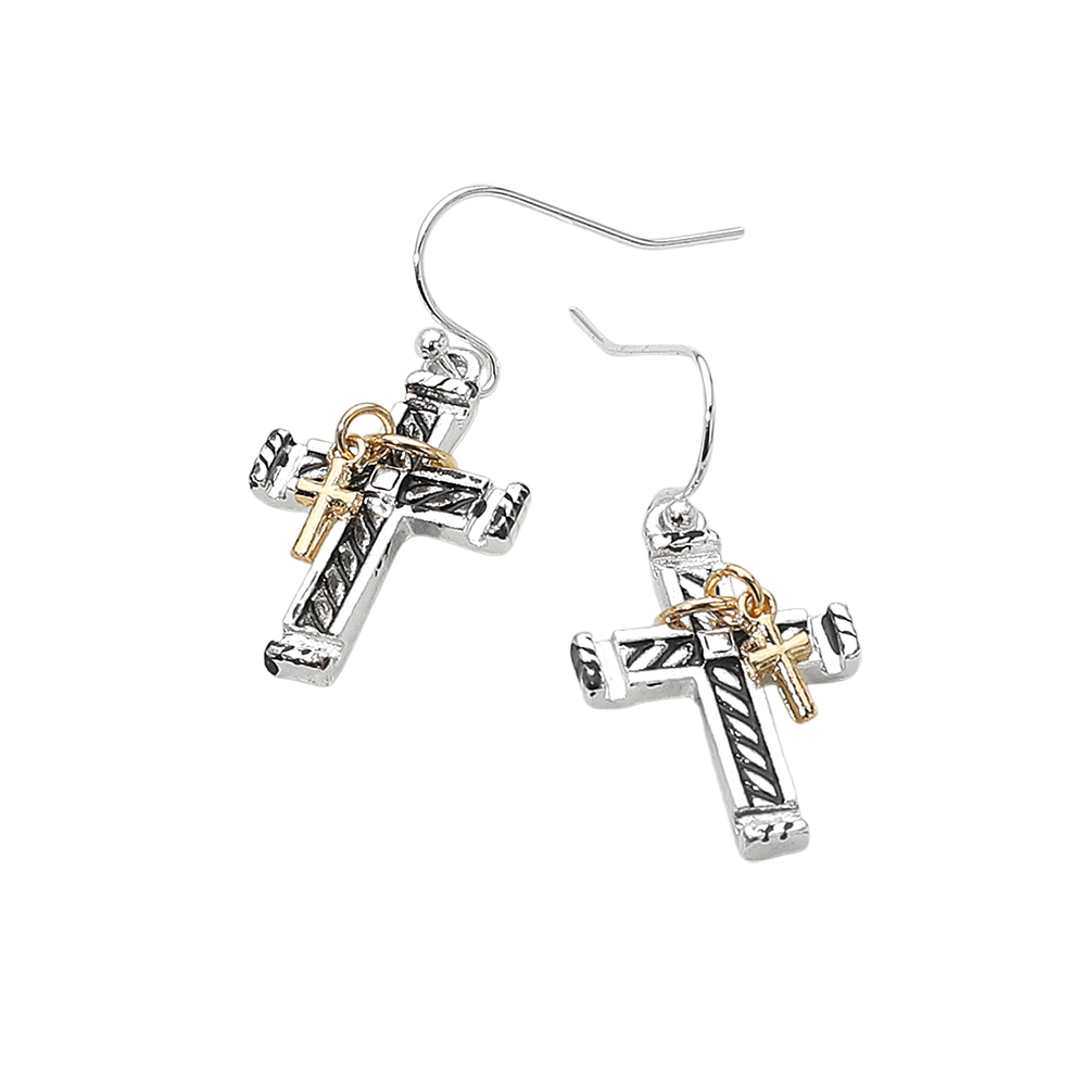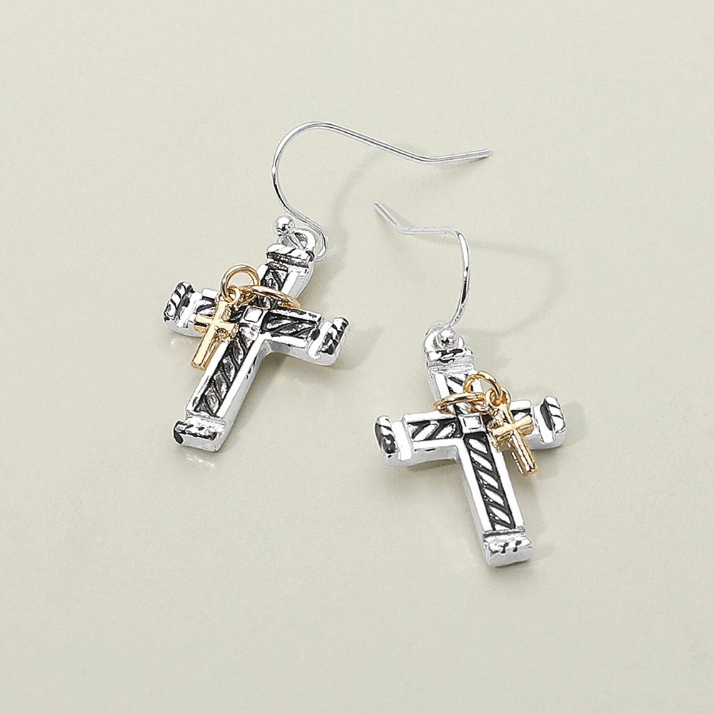 Details • Size : 0.6" X 1.3" • Fish Hook Back • Stylish drop earrings featuring bold cross pendants accented with smaller cross charms for layered detail. A meaningful accessory blending faith and fashion, ideal for everyday wear or statement styling. • Lead and Nickel Compliant