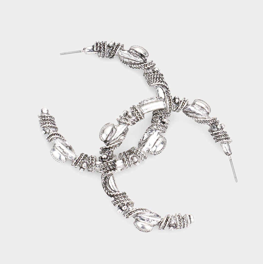 Natural Stone Pointed Stone Embellished Cross Western Dangle Earrings