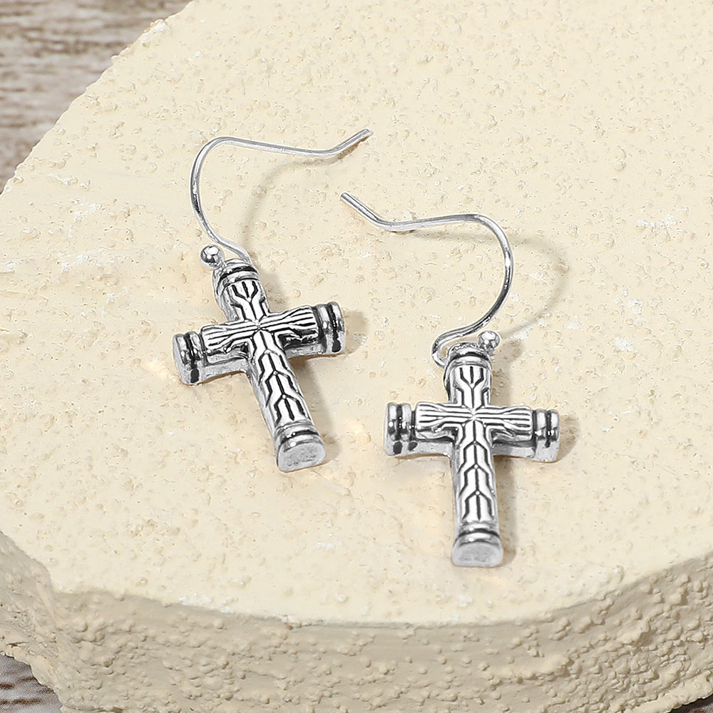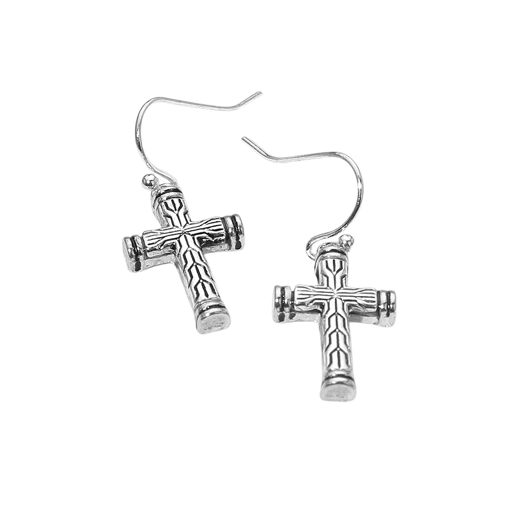Details • Size : 0.5" X 1.25" • Fish Hook Back • Elevate your look with these vintage cross drop earrings featuring textured detailing and a bold design. Perfect for everyday wear or special occasions, these earrings add a touch of faith-inspired elegance and timeless style, making them a meaningful and versatile accessory for any collection. • Lead and Nickel Compliant