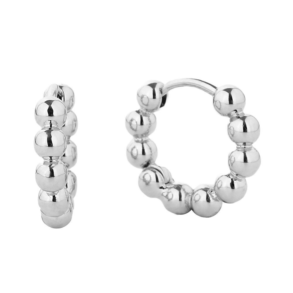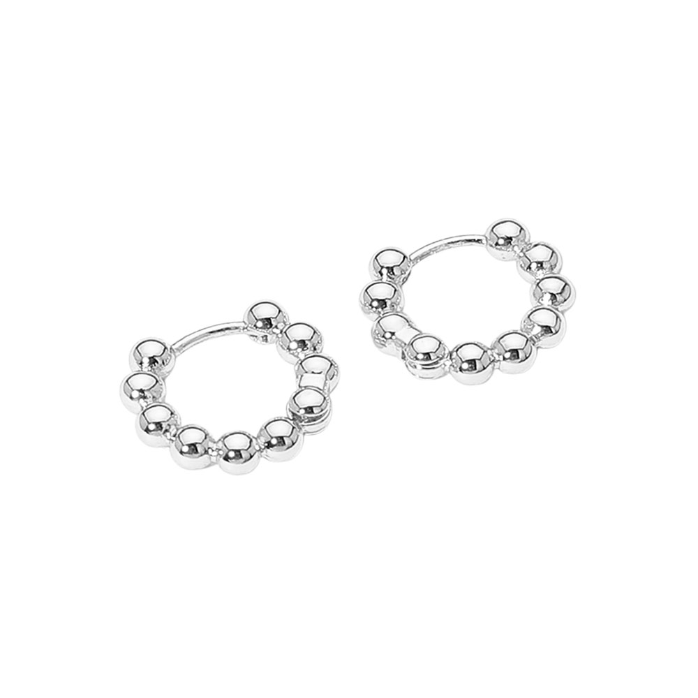 Details • Size : 0.6" X 0.6" • Huggie Back • Elegant beaded hoop earrings designed with polished round beads in a timeless circular style. Lightweight and versatile, these hoops enhance any outfit with subtle shine and modern elegance, making them perfect for daily wear or dressing up for special occasions. • Brass • Gold Dipped • Hypoallergenic • Lead and Nickel Compliant • Made In Korea
