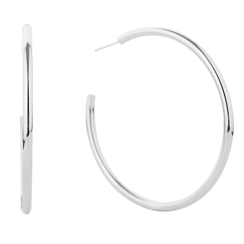Details • Size : 2.4" X 2.4" • Post Back • Water resistant plating • Sleek medium hoop earrings with a polished, lightweight design for all-day comfort. A timeless and versatile accessory, perfect for both casual and dressy outfits, adding a subtle yet elegant touch to any style. • Brass • Gold Dipped • Hypoallergenic • Lead and Nickel Compliant • Made In Korea