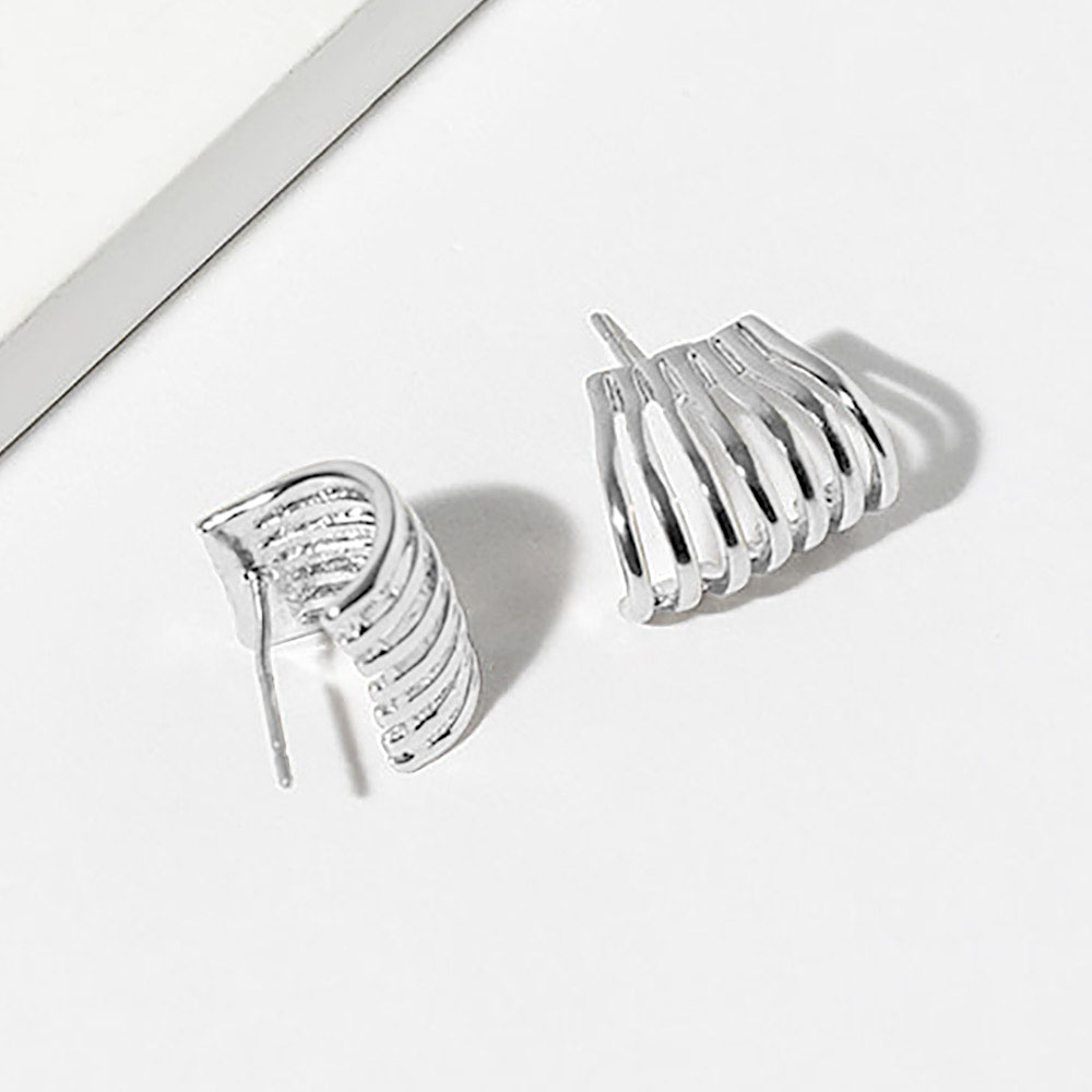 • Contemporary ear cuff style stud earrings designed with a layered ribbed silhouette that hugs the ear for a bold, sculptural look. This modern statement piece adds depth and texture while remaining easy to style for everyday wear or trend-focused fashion collections.