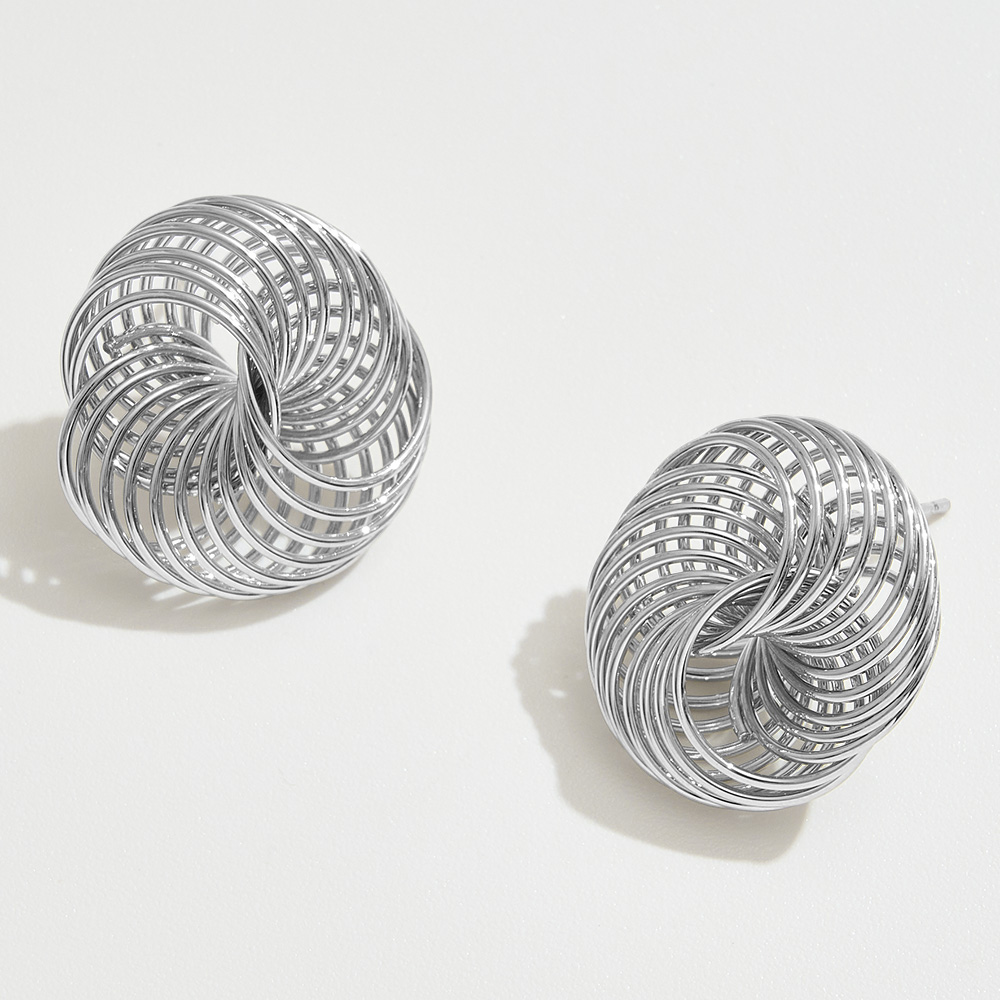 Details • Size : 1" X 1" • Post Back • Elegant knot stud earrings crafted with interwoven wire loops, creating a bold yet refined sculptural design. Lightweight and versatile, these earrings add modern sophistication to casual or formal outfits, making them a timeless accessory for jewelry collections and everyday wear. • Lead and Nickel Compliant • Hypoallergenic • Made In Korea • Gold Dipped • Brass