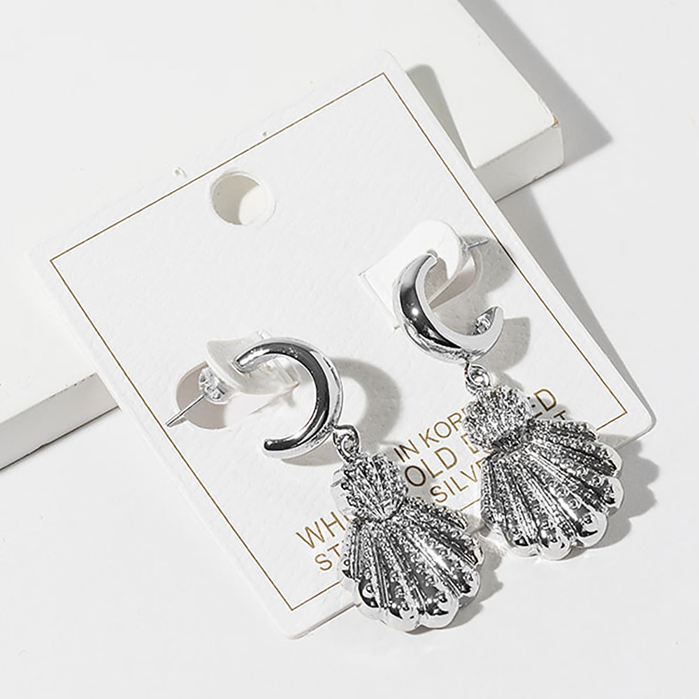 Details • Size : 0.75" X 1.75" • Scallop shell drop earrings featuring a sculpted shell motif with dimensional texture and elegant movement. Designed to complement resort looks, coastal edits, and everyday styling, these statement drops offer timeless seaside charm for boutique assortments and gift-ready displays. • Gold Dipped • Lead and Nickel Compliant • Made In Korea • Sterling Silver Post