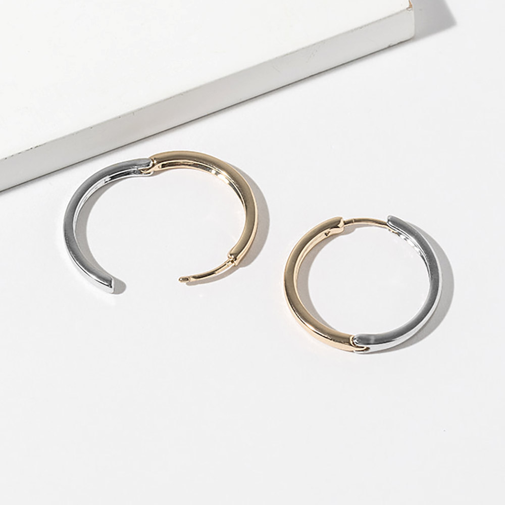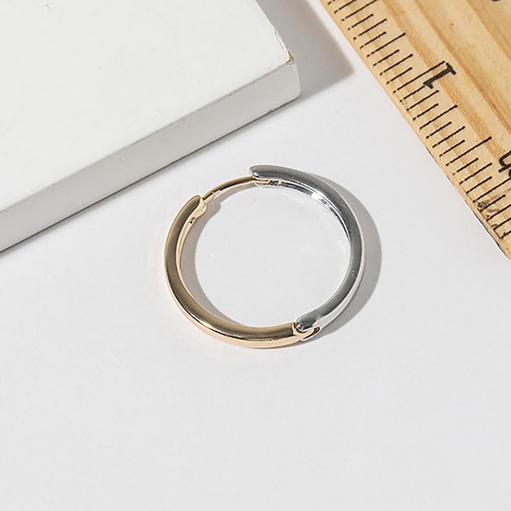 Details • Size : 1" X 1" • Huggie Back • Timeless classic hoop earrings featuring a smooth rounded silhouette with a modern dual-tone design and secure post closure. Perfect for everyday wear, office looks, and effortless styling, these versatile hoops offer balanced contrast, clean lines, and polished elegance for a refined jewelry collection. • Gold Dipped • Lead and Nickel Compliant • Made In Korea