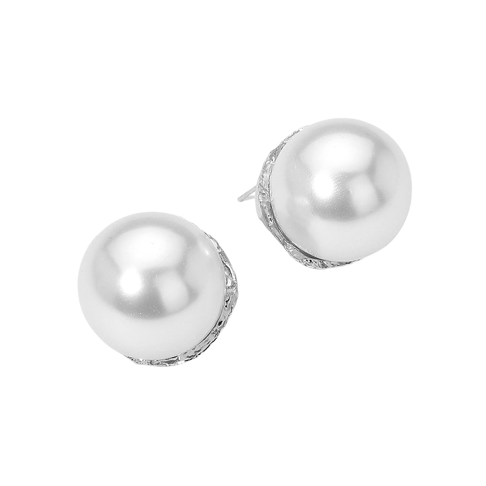 Details • Size : 1.2" X 1" • Post Back • Timeless round pearl stud earrings designed with a smooth, lustrous finish and delicate detailing for a sophisticated touch. Perfect for everyday elegance or formal occasions, these versatile earrings add a refined and polished look to any outfit. • Lead and Nickel Compliant