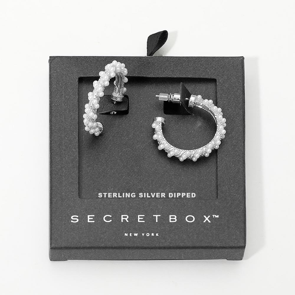 Details • Size : 1" X 1" X 0.2" • Post Back • Chic beaded hoop earrings featuring a twisted design for a refined, elegant look. Perfect for casual or formal occasions, these stylish hoops add a touch of sophistication and texture, making them a versatile accessory for elevating any outfit with timeless charm. • Sterling Silver Dipped