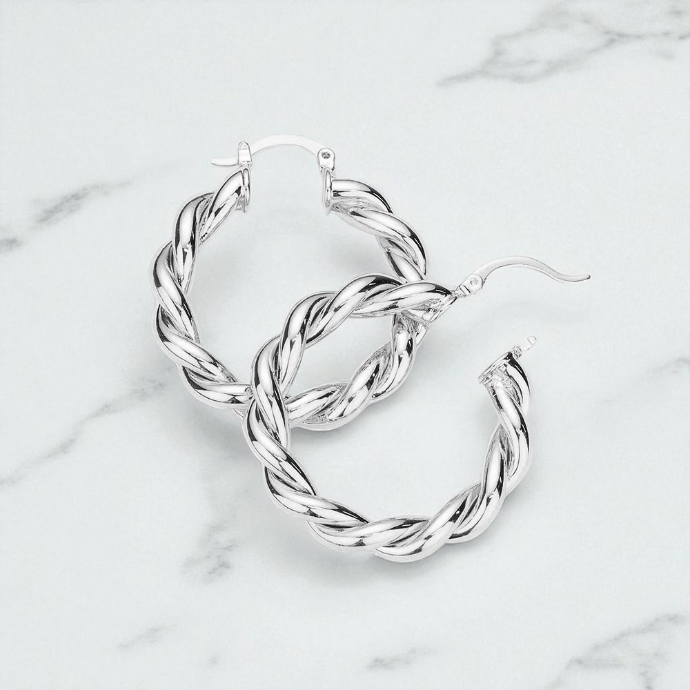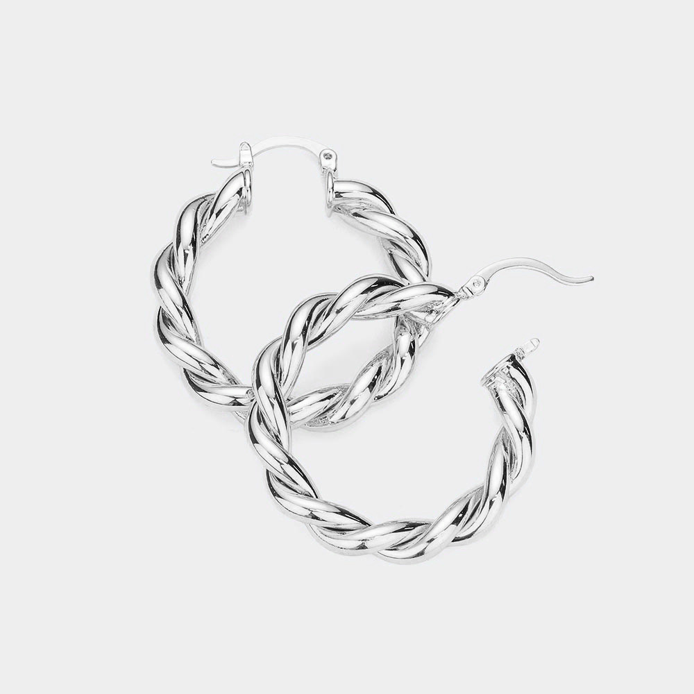 Braided Metal Hoop Pin Catch Earrings