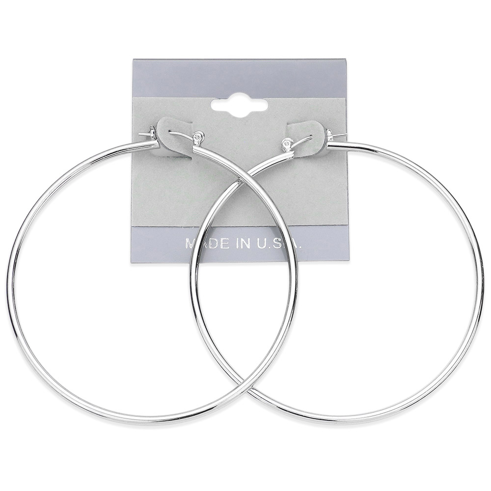 Details • Size : 2.6" L • Pin Catch • Made In USA • Elevate your everyday style with these classic oversized hoop earrings, designed for a sleek and versatile look. Lightweight and comfortable to wear, they add a bold yet timeless accent to any outfit, making them the perfect go-to accessory for day or night.