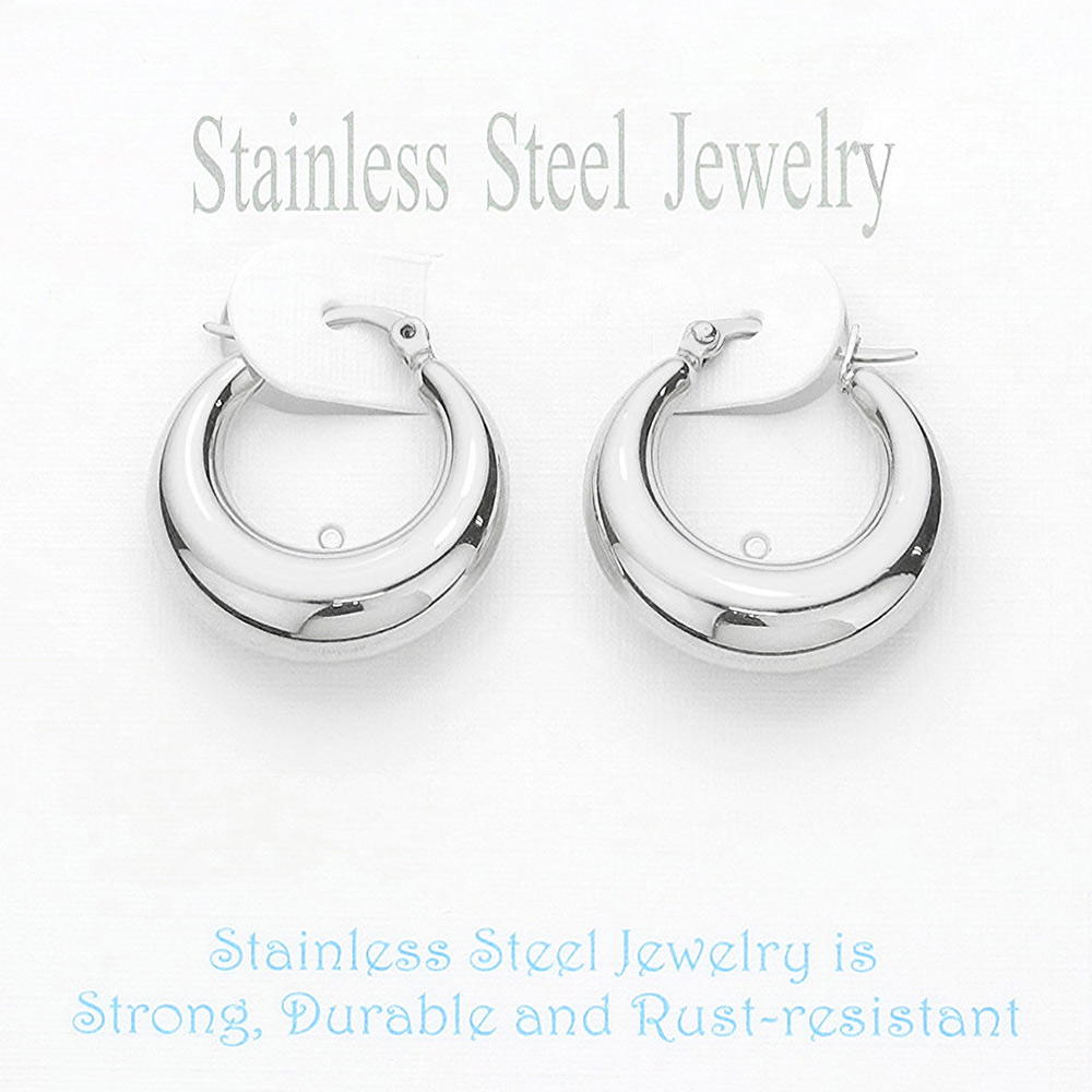 Details • Size : 1" X 1" • Pin Catch • Polished pin catch hoop earrings designed for easy wear and timeless styling. Their sleek curved profile brings subtle shine to everyday outfits while remaining comfortable for all-day use. A versatile accessory ideal for casual looks or elevated ensembles. • Stainless Steel
