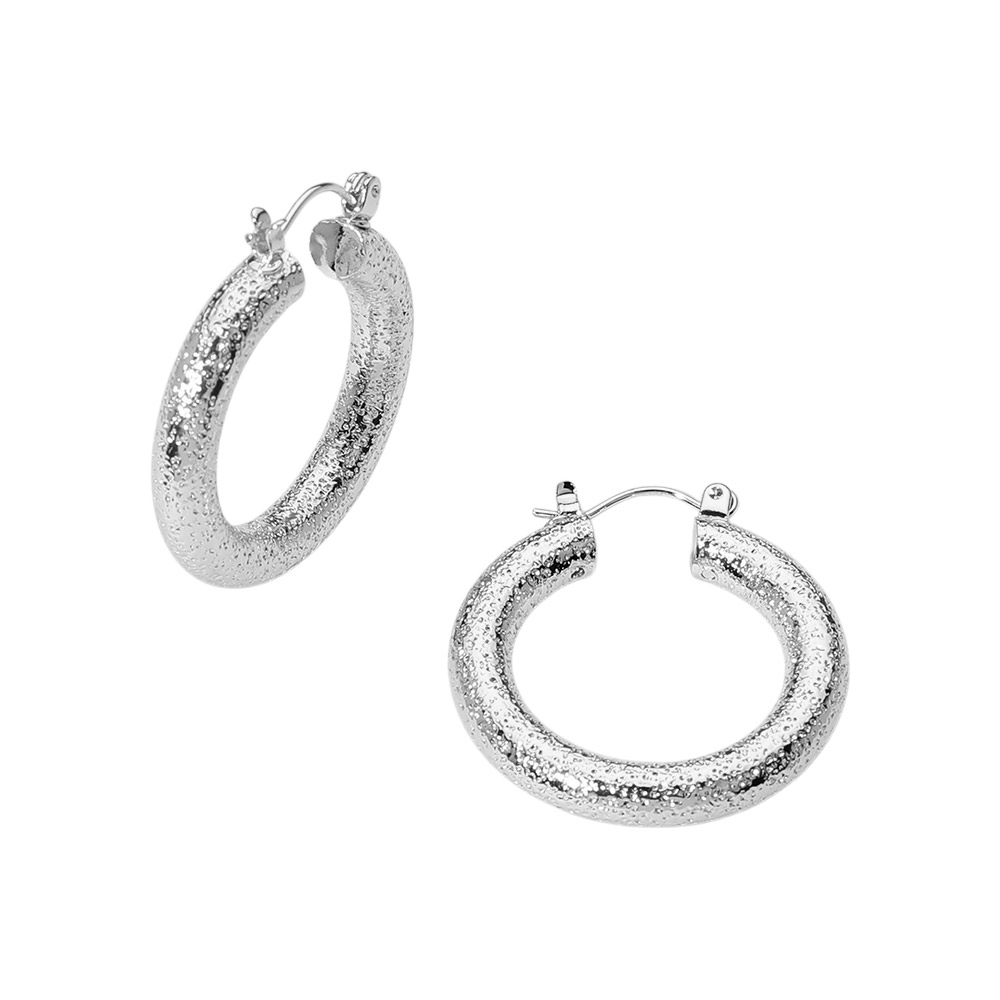 • Statement hoop earrings with a wide rounded shape and textured surface, designed for a modern and eye-catching accessory style.