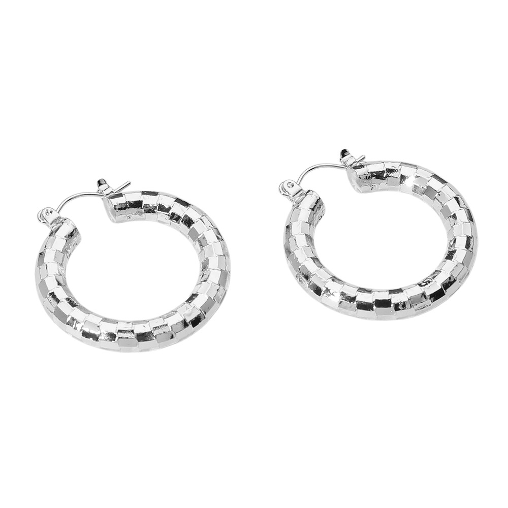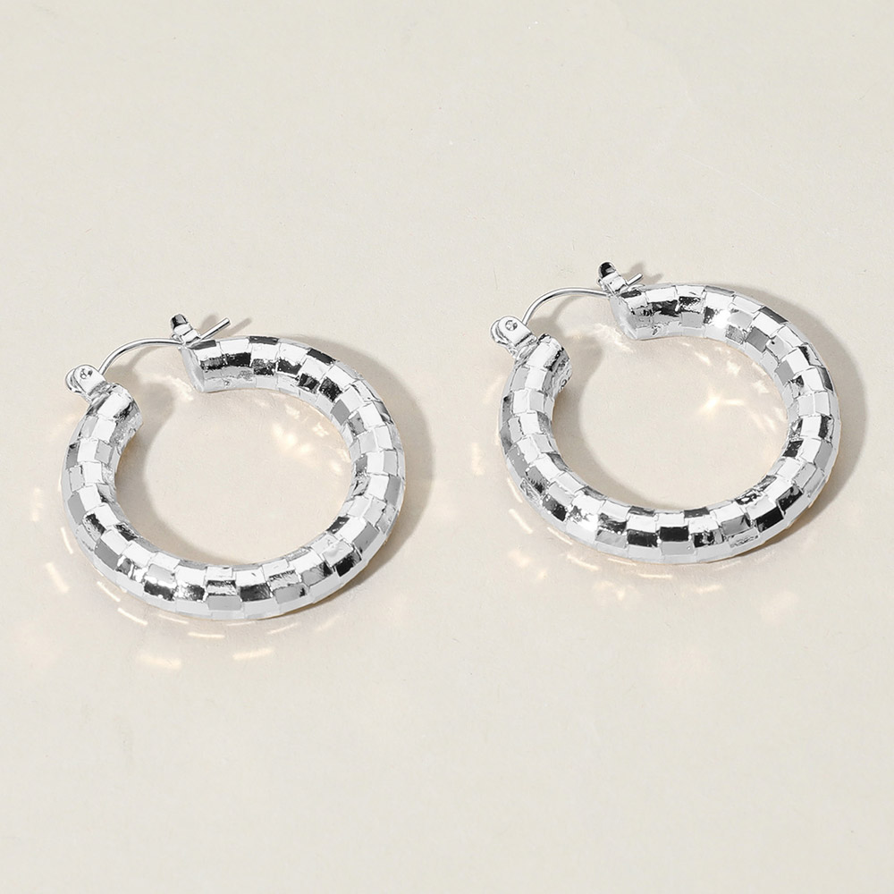 Details • Size : 1.2" X 1.25" • Pin Catch • Bold hoop earrings with a striking geometric texture and a chunky silhouette. Lightweight and comfortable, perfect for adding a modern edge to any outfit. Ideal for everyday wear or special occasions. • Lead and Nickel Compliant