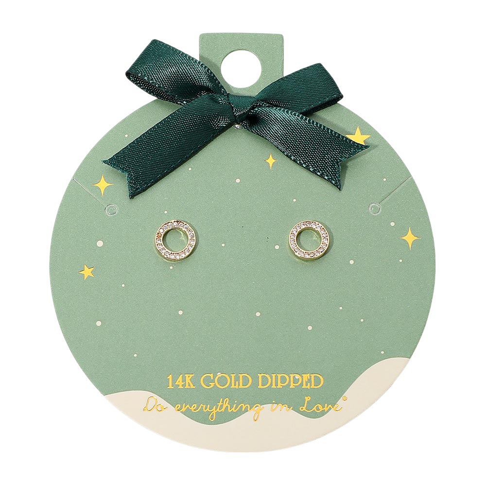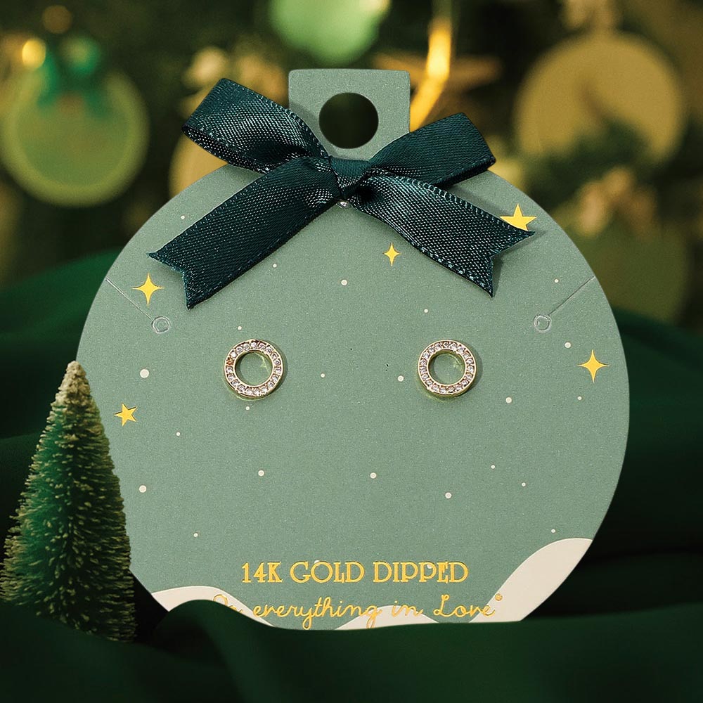 Details • Size : 0.3" X 0.3" • Post Back • Elegant open circle stud earrings featuring a minimalist silhouette accented with sparkling stones. A refined 14K gold dipped accessory that adds subtle shine to everyday looks and special occasions. Perfect for gifting or enhancing your jewelry collection with timeless simplicity. • Gold Dipped • Hypoallergenic • Lead and Nickel Compliant • Made In Korea