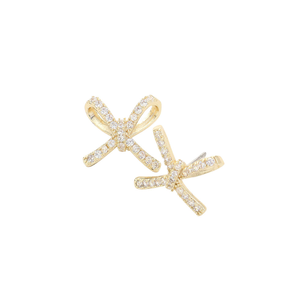 14K Gold Plated CZ Stone Paved Bow Stud Earrings
