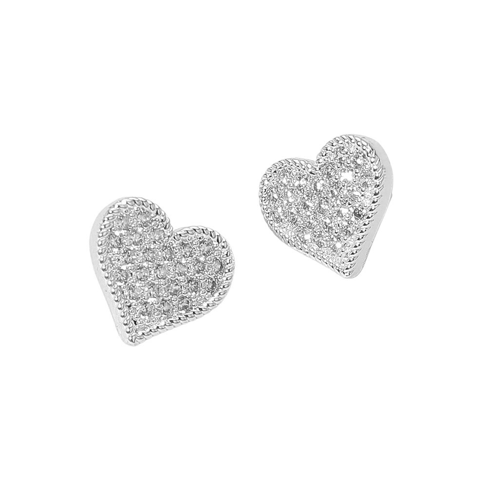 • Add a touch of romance to your look with these crystal heart stud earrings, featuring a sparkling pavĂ© design framed by delicate textured detailing. Perfect for everyday wear or gifting, they bring timeless elegance and feminine charm to any jewelry collection.