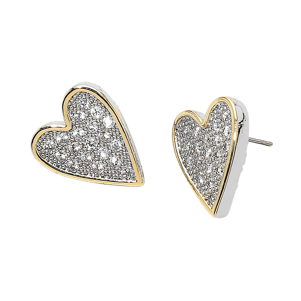 14K Gold Plated Two Tone CZ Stone Paved Heart Stud Earrings